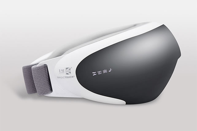 スマートなアイマスクで、こめかみや目の周りを優しく刺激し、心地よいサウンドで緊張をほぐし、心身共にリフレッシュしましょう